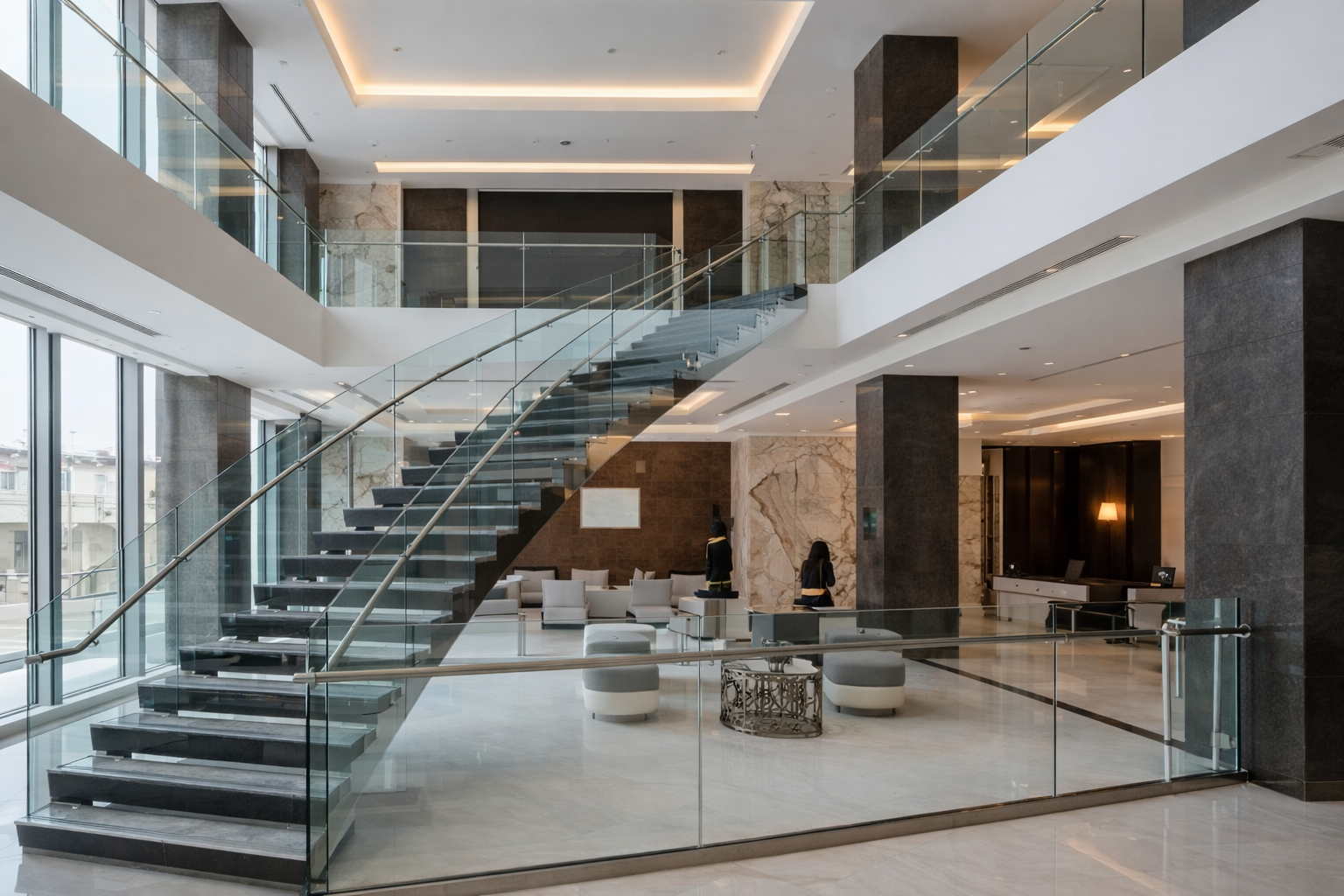Al Bayt Stadium ke VVIP lounge aur Sheikh Faisal Museum ke glass display boxes hamari maharat ka saboot hain. Hum unique glass stairs aur stainless steel handrails mein specialize karte hain.